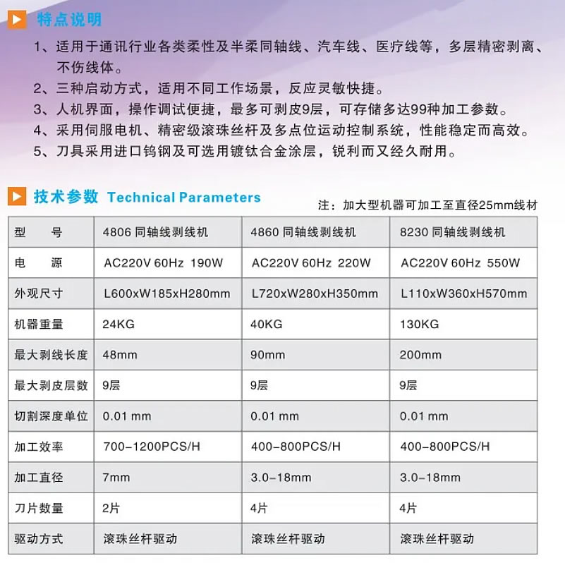 4806、4860、8230 全自动同轴线剥线机
